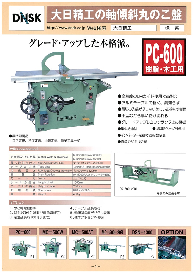 軸傾斜丸のこ盤 大日精工 中古木工機械 商談中 商談中 軸傾斜丸のこ盤 メーカー名:大日精工 型番:PC-600 【商品状況】 整備済み 【参考資料】 軸傾斜丸のこ盤 カタログ 【その他】 分類:Z 06-6779-5091 WEBからのお問い合わせ 【商品状況】 整備済み 【参考資料】 軸傾斜丸のこ盤 カタログ 【その他】 分類:Z 中古木工機械販売一覧